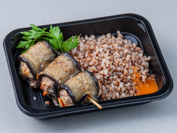 Hrișcă și rulouri de pui cu vinete