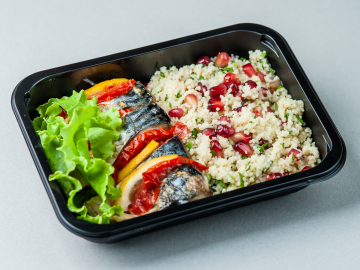 Cous-cous cu rodie și Macrou copt